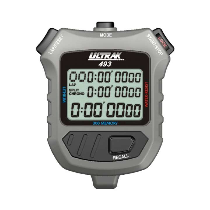 The Ultrak 500 Lap Memory Stopwatch features a memory recall during operation! 500 dual split...