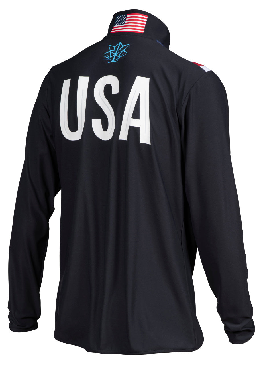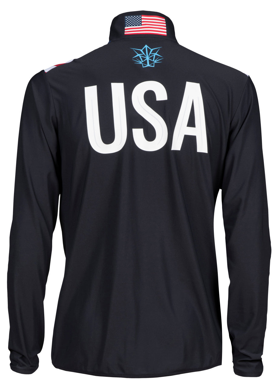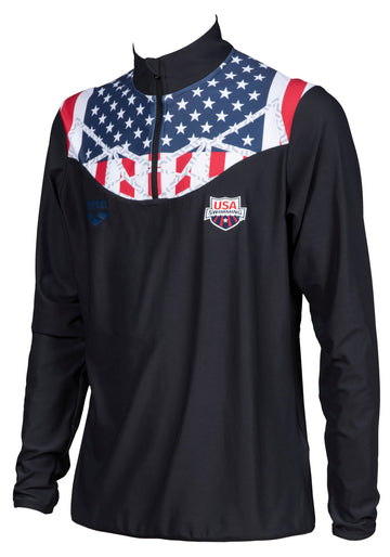Ignite the spirit of American pride with the Arena M OG Half-Zip Shirt. This patriotic masterpiece features the stars and stripes of the USA flag proudly displayed on the front, accompanied by the iconic Arena logo on the chest, and a bold 'USA' on the back. Embrace the fit note: this item runs large, encouraging a comfortable yet athletic silhouette. For optimal sizing, we recommend ordering one size down from your regular Arena apparel size. The shirt is crafted from a soft, comfortable, and non-bulky fabric, ensuring you stay light on your feet, unrestricted in your athletic pursuits. The long sleeves provide dual functionality, protecting you from sunburn during outdoor activities and keeping you cozy warm when the temperature drops. Every stitch is a testament to pride and precision, assembled to be durable, comfortable, and of outstanding quality. Unleash the spirit of the arena, and let the world witness your dedication to the pursuit of excellence.rn