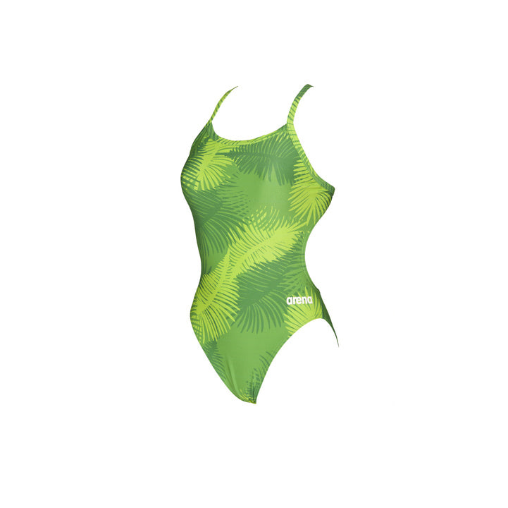 Built with Arena\'s most advanced and longest-lasting fabric, the Palm Forest Max Life Challenge Back delivers maximum comfort, range of motion, and chlorine resistance. This suit features a contemporary cutout, full front lining, medium height leg cut, and thin straps for full freedom of movement and support. This high quality suit is ideal for demanding competitive swimmers and casual trainers.