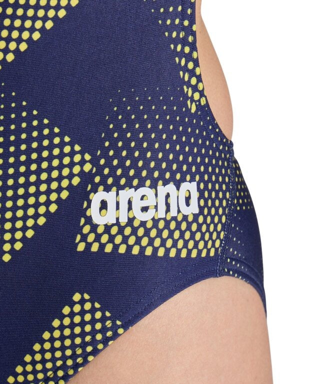 Stand out in style with the Arena Women’s Halftone One-Piece Swimsuit, featuring the supportive Challenge back design. Made from MaxLife fabric, it’s chlorine-proof and durable, making it perfect for daily training.