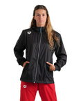 The Arena Unisex Team Windbreaker Solid is a reliable layer for cool mornings or outdoor poolside sessions. Its wind-resistant shell fabric cuts breezes while a lightweight lining adds comfort without weight.