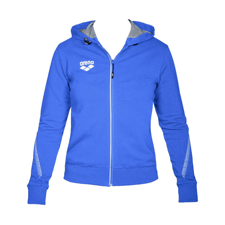 Perfect for athletes and coaches, the Arena TL Hooded Jacket for women features warm and durable materials. Its cotton and polyester construction will hold up to the elements and abuse on deck, while the brushed stretch baby fleece interior will be soft against your skin and keep you warm. Coming in several solid colors, it would make the perfect addition to any team attire.
