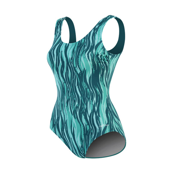The Dolfin Aquashape Moderate Scoop Back Print Female is a great suit for aquatic fitness or even recreational swimming.