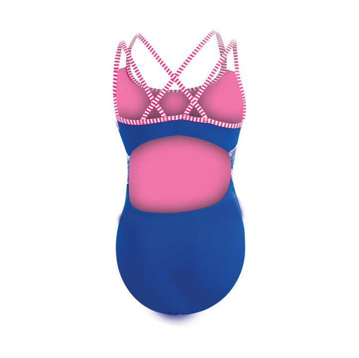 Wherever your seaside or pool party adventures take you, the Dolfin Uglies Underwater Camo Double Strap Open Keyhole Back has you covered! The fantastic polyester construction resists chlorine, fading, and stretching while offering UPF 50+ protection. Fully lined with a performance cut leg and double strap back, this suit will be sure to keep you comfortable swim after swim.
