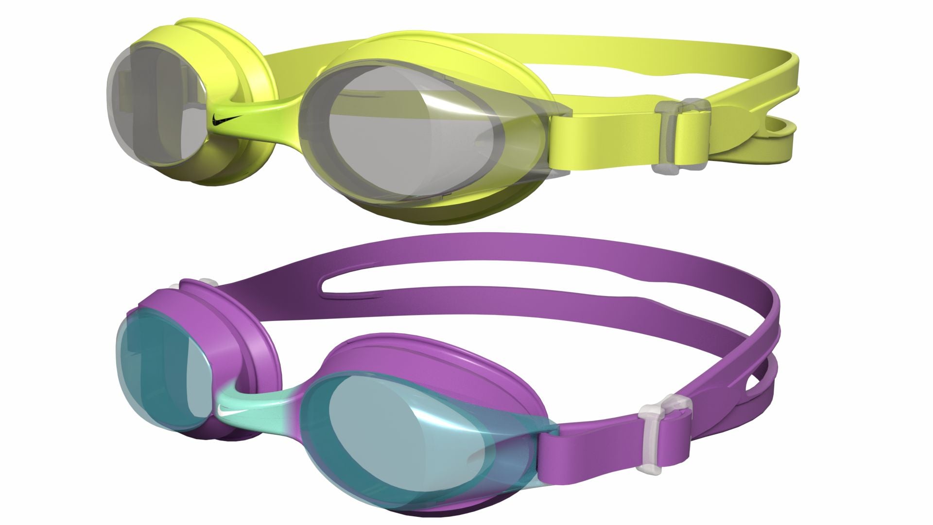 What if there were goggles designed specifically to provide your little ones with an unparalleled swimming experience? Enter the Kids' Nike Lil' Swoosh Goggle 2-Pack – a dynamic duo crafted to make a splash in style and comfort. Wondering how your kids can enjoy an unobstructed peripheral view? The WIDE-ANGLE lens ensures just that, allowing them to explore the underwater world with ease. Concerned about durability and comfort? The goggles feature a DURABLE, SOFT, and flexible one-piece frame, promising both resilience and comfort for endless aquatic adventures. How about ensuring a secure fit? The silicone split head strap is designed to keep the goggles in place, providing your young swimmers with worry-free fun in the water. Tailored to accommodate smaller and narrower faces with a YOUTH FIT, these goggles are the perfect companion for your little water enthusiasts. Plus, they're 100% Latex Free for added peace of mind. Ready to turn swim time into a joyful adventure for your kids? Dive into the world of the Kids' Nike Lil' Swoosh Goggle 2-Pack and watch their smiles light up the pool.