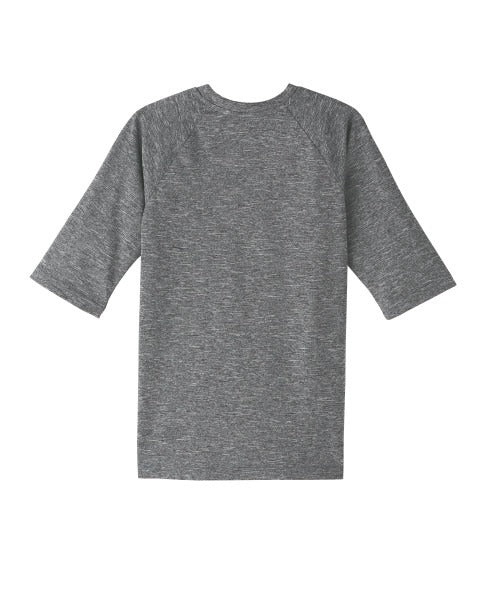The short sleeve design offers mobility, while the heathered finish adds a stylish touch to swim sessions and outdoor play.
