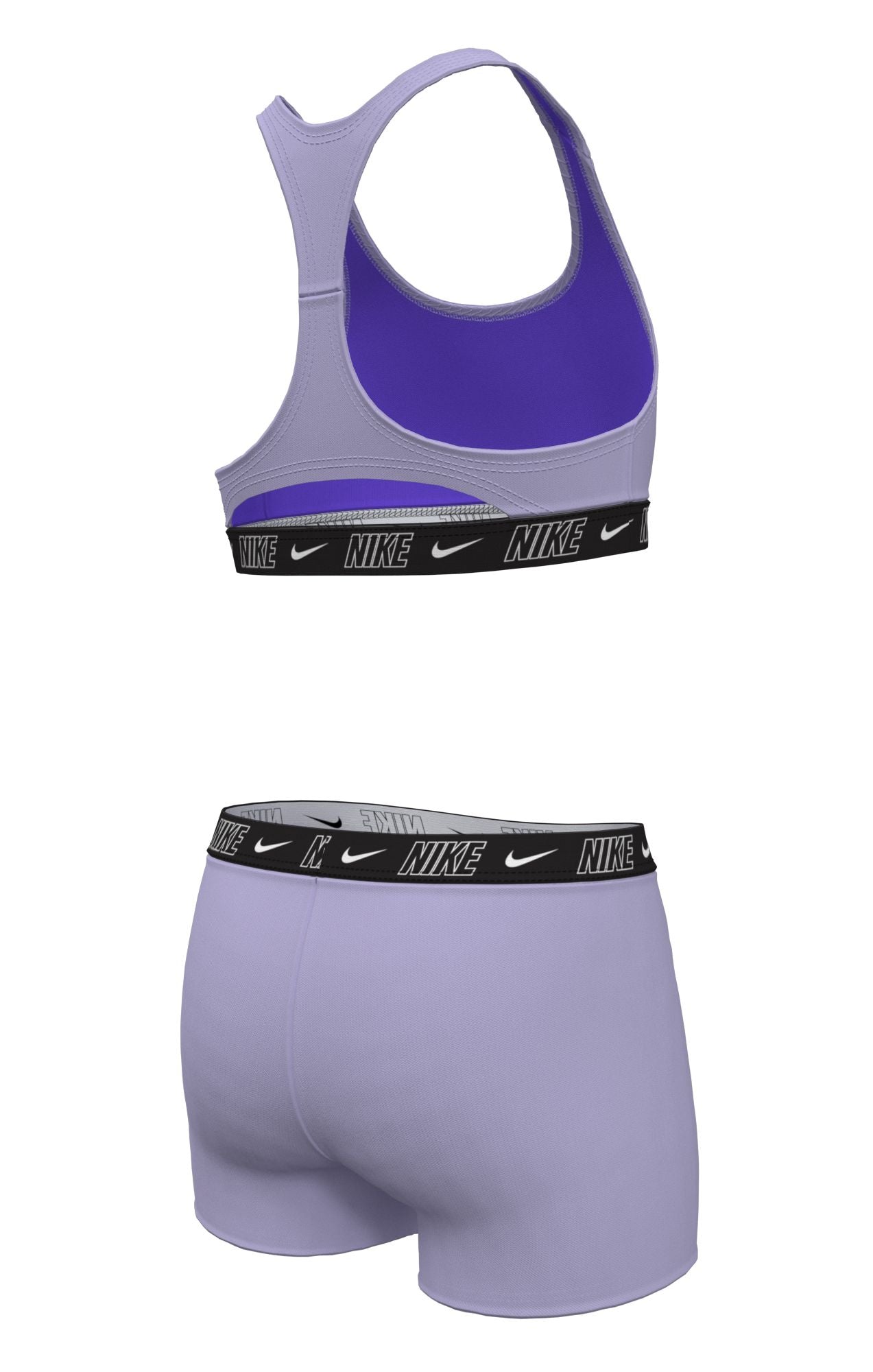 The Nike Girl’s Logo Tape Racerback Bikini & Short Set combines comfort, coverage, and sporty style for active girls. Made with durable, chlorine-resistant fabric, this set maintains fit and color through regular swimming and play.