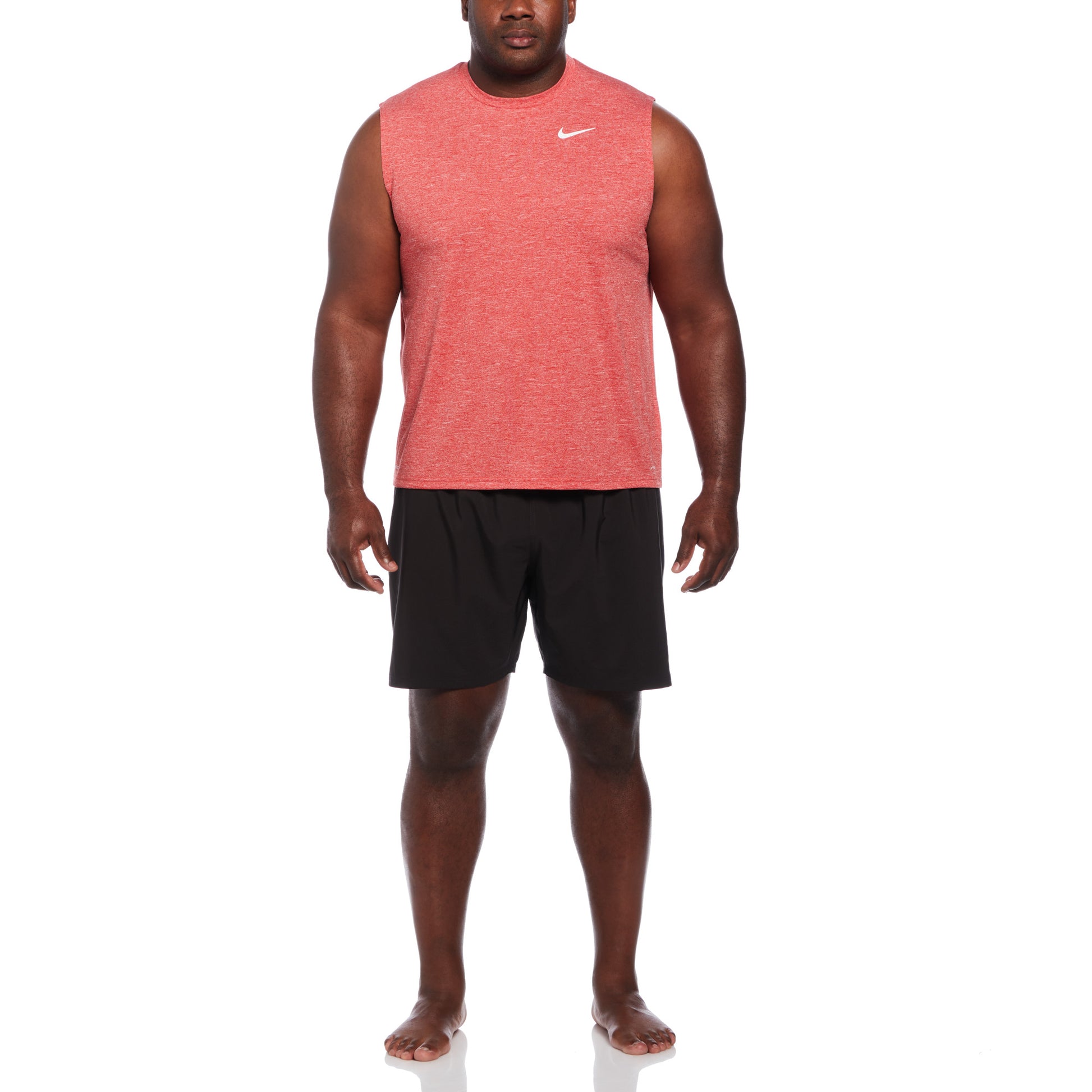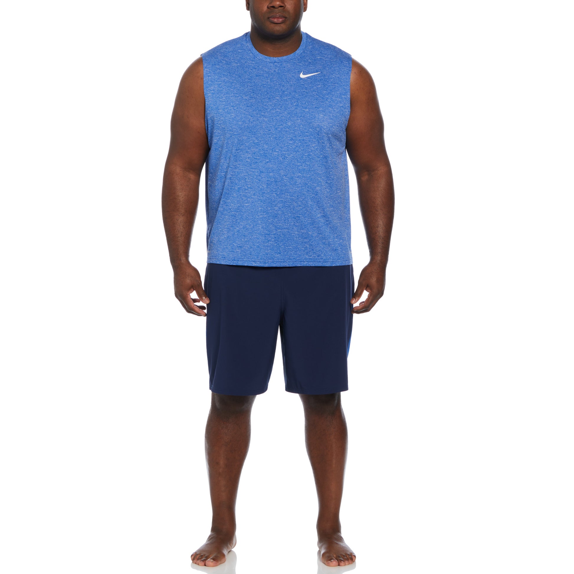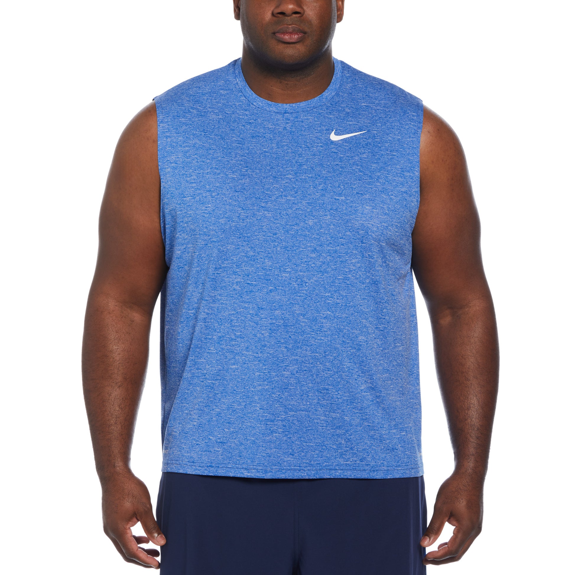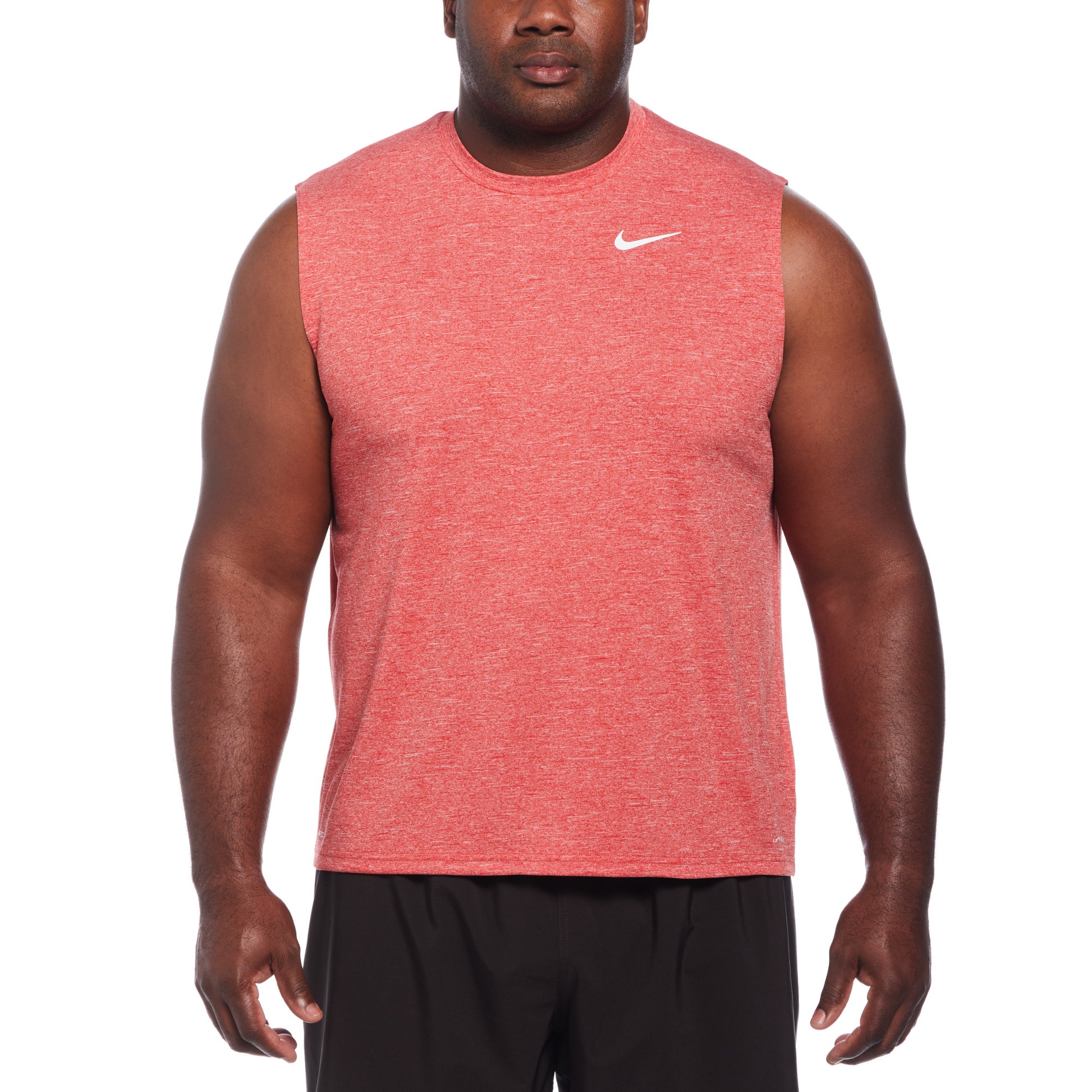 Show off your biceps in this Heathered Sleeveless Hydroguard swim shirt! Whether you're out for an intense workout or just a casual day on the beach, the Nike Men's Plus Size Heather Sleeveless Hydroguard swim shirt will keep you dry and comfortable with its Dri-FIT technology. Provides a flexible fit with its stretch fabric, it allows ease of movement in or out of the water. This protects you from UVA and UVB rays in areas that it covers.