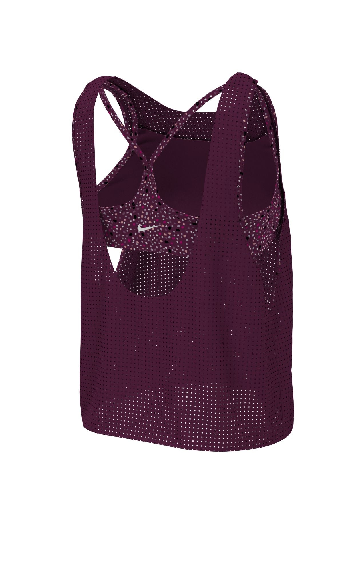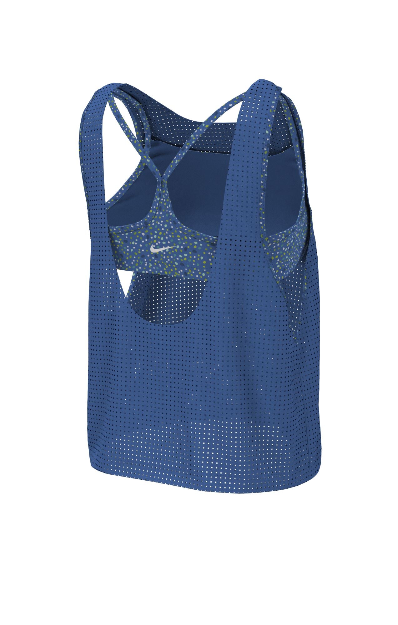Whether you're at the beach or by the pool the Nike Water Dots Convertible Layered Tankini is perfect for any activity under the sun. The layered loose fit provides coverage while the layered mesh allows breathability. Features removable soft cups and cup stabilizer pockets that secures them into place.