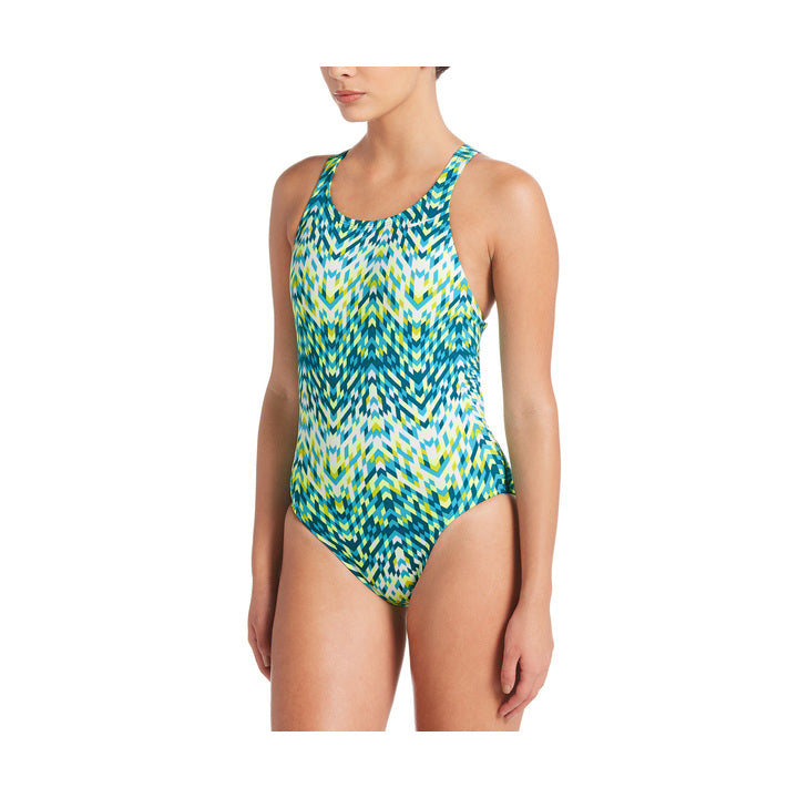 The ultimate training suit for all ages. A modest cut with great coverage and a beautiful design. The Nike Digi Arrow Performance Poly Power Back Female blends the best of fashion and functionality. A power back cut provides high neck coverage without sacrificing range of motion. Swim longer and harder in this amazing suit and be prepared for race day.