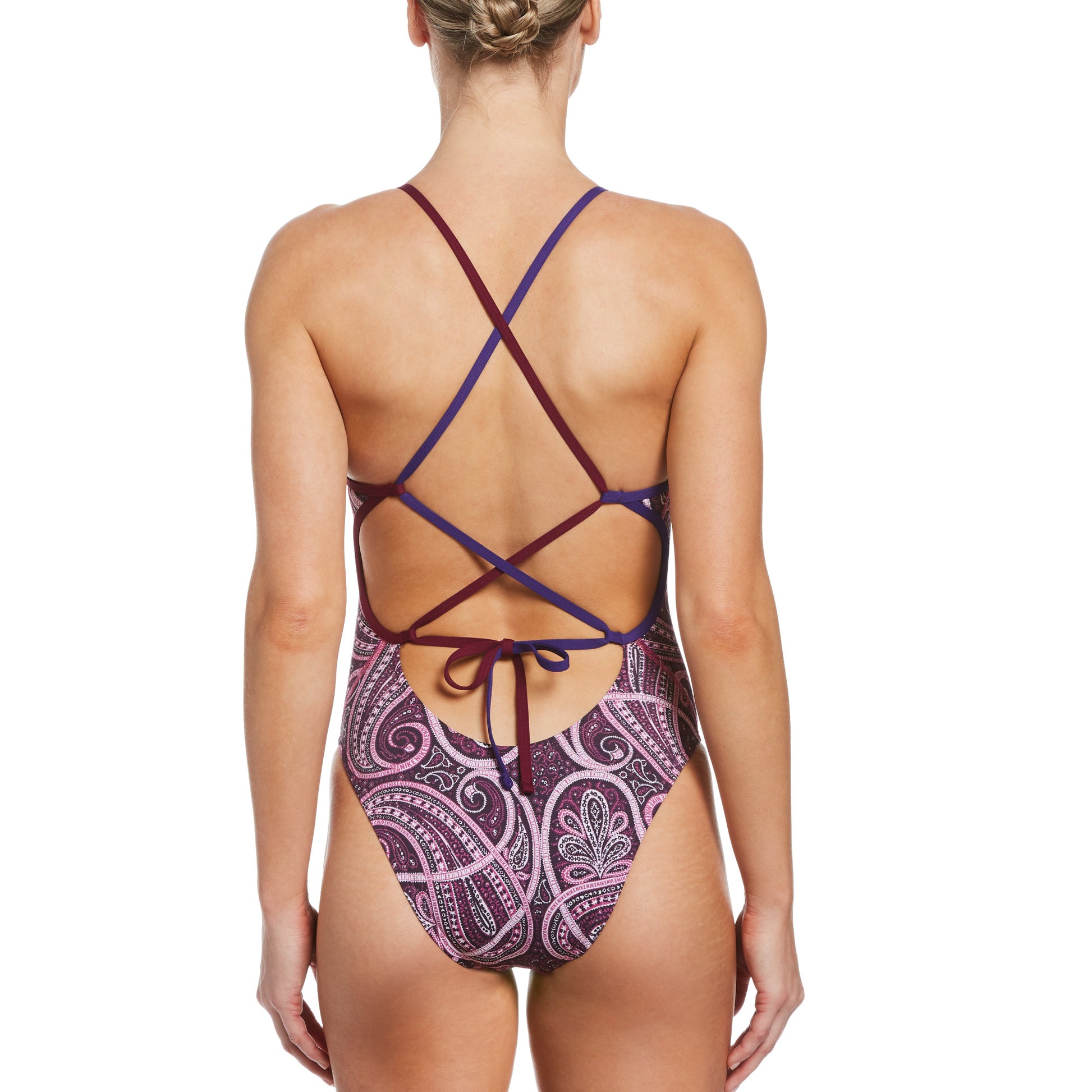 Make out like a bandit with this steal of a suit by Nike! The Bandana Lace Up Tieback One Piece features a Hydrastrong fabric construction for superior chlorine resistance and long-lasting wear. The brilliant paisley pattern will resist fading and stretching over time. Skinny straps offer light support and are ideal for lower-impact activity. Cheeky bottom coverage provides flattering style for the minimalist wanting total freedom of movement. Fully lined for better fit and support.