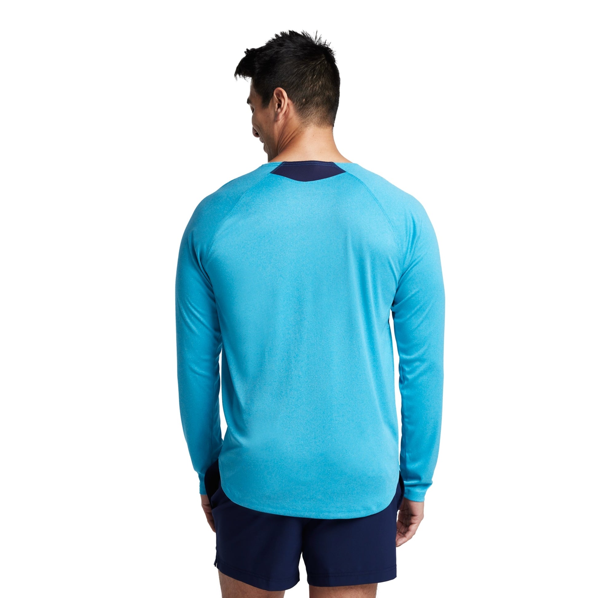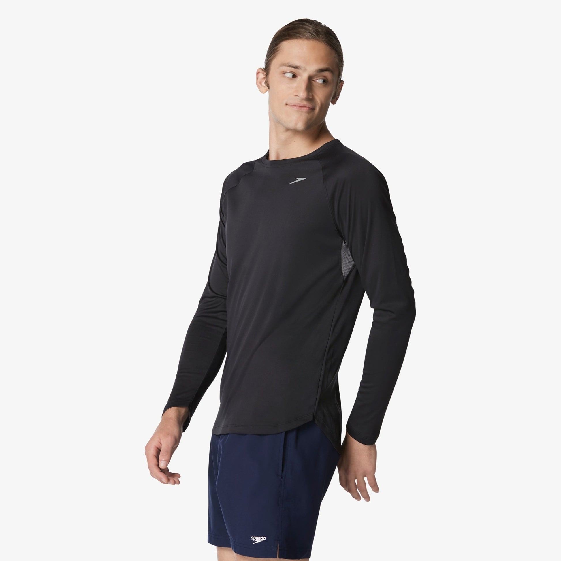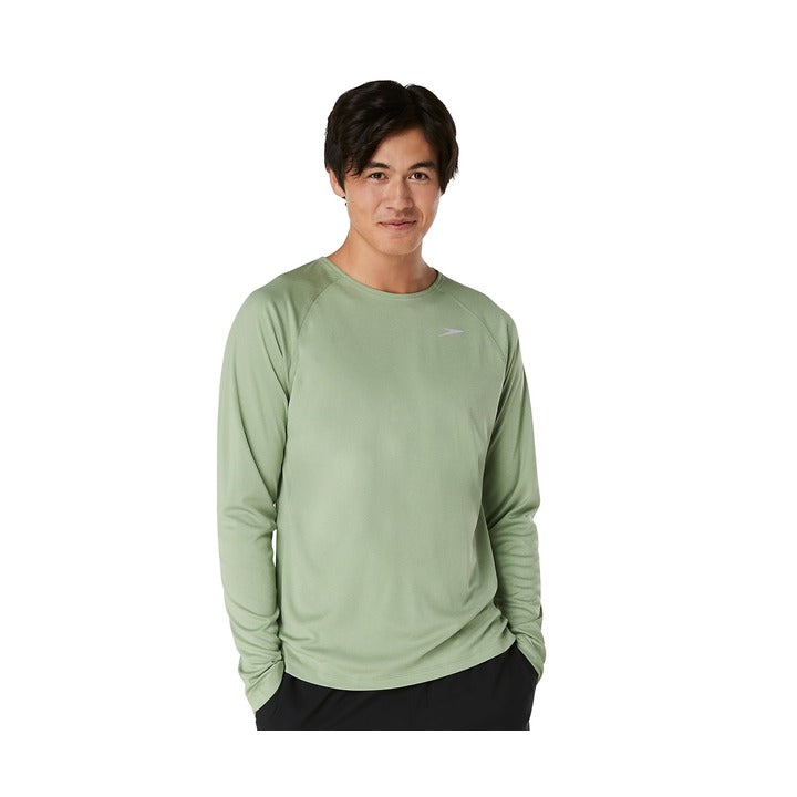 The Speedo Men’s Long Sleeve UV Swim Shirt offers lightweight protection for workouts in and out of the water. Its UPF 50+ fabric shields skin from harmful rays while providing comfort and durability.
