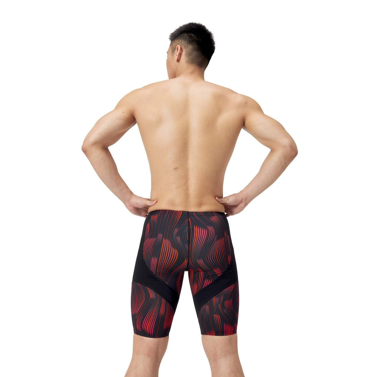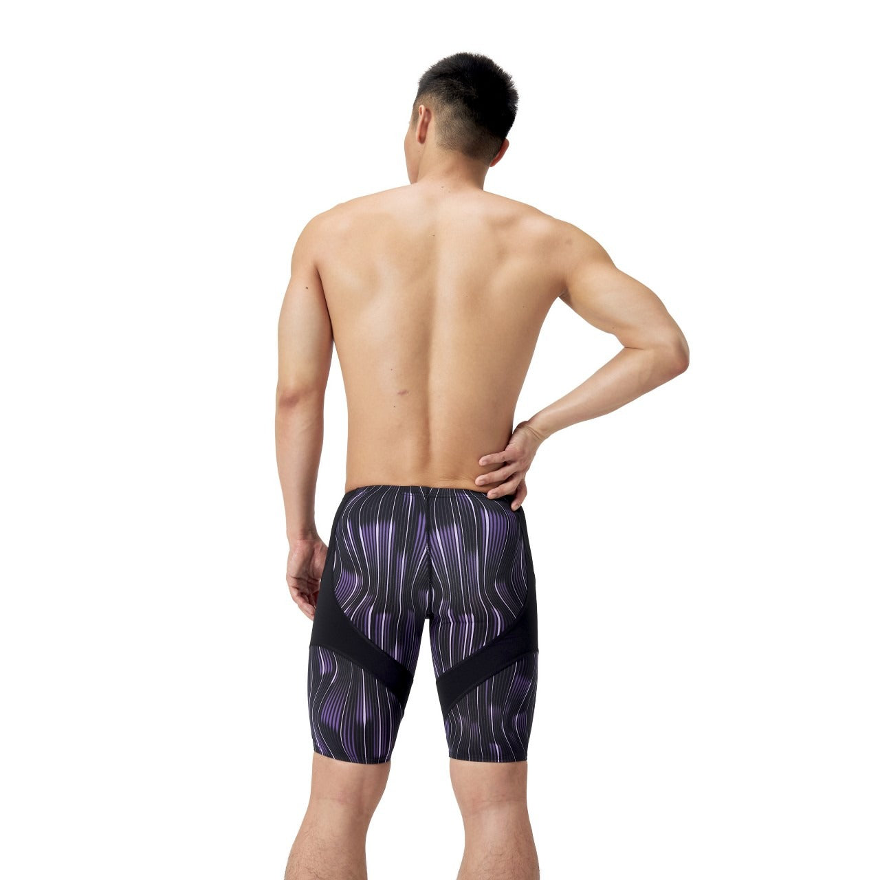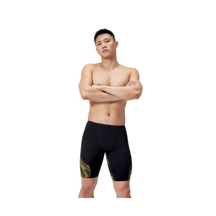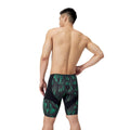 The jammer cut provides streamlined coverage from waist to mid-thigh, ideal for training or competition. The bold space-themed design adds visual interest without compromising function.