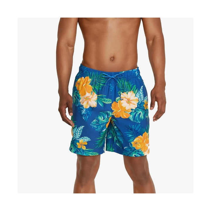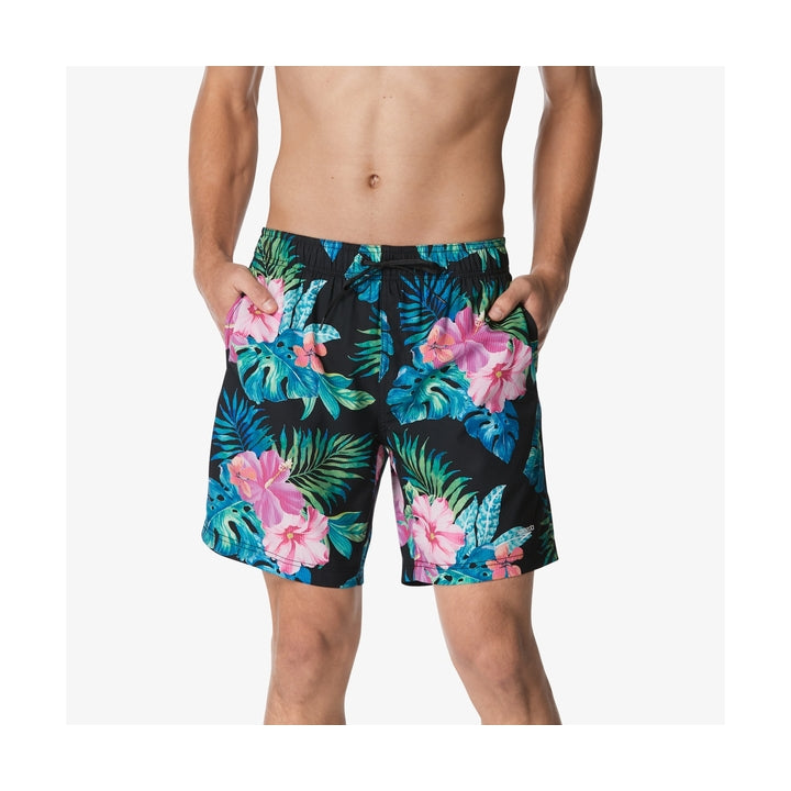 Say Aloha to the Speedo Men's Printed Volley 18. You're sure to ride the waves worry free, with the built-in Speedo Eco mesh basket liner. Features 3 pockets, side seams and back flap pocket for your small essentials.