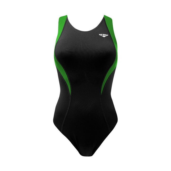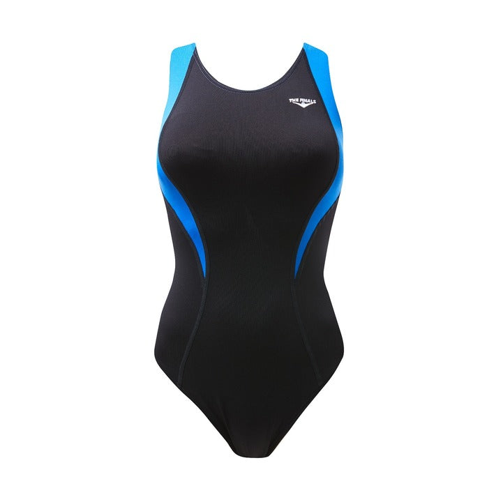Young swimmers, get ready to dive into performance and style with The Finals Girls\' Surf Splice Waveback Swimsuit! Whether you\'re training for your next race or perfecting your strokes, this suit is built for comfort, durability, and speed. Whether in practice or competition, this suit will help you own your lane and make waves!
