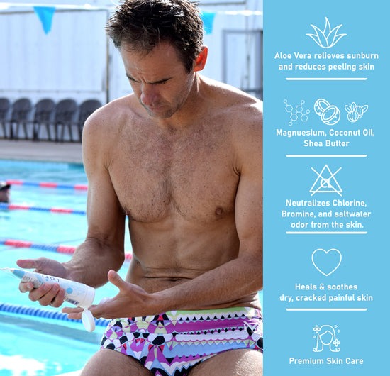- Effectively reconditions the skin with its innovative formula to combat harsh elements of Chlorine, Bromine salt water and sun that swimmers and active individuals encounter.