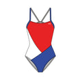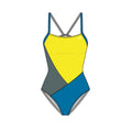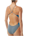 Combine your passion for swimming and the abstract with the TYR Solid Splices Block Cutoutfit. A simple, bold design makes a striking appearance on deck. Colors stay vibrant with the Durafast One construction, a 100% Polyester fabric designed to resist chlorine and fading. This premium suit is soft and comfortable, featuring a low neckline, high cut leg, and an open back for great freedom of movement.