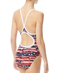 Show off your true colors in the new All American Diamondfit by TYR! Just in time for the 2020 Olympic season, this abstract take on the Red, White, and Blue uses durable Durafast One fabric. This ensures ultimate chlorine resistance and prevents colors from fading. The diamondfit design features sleek straps, a medium neckline, moderate cut leg, and a keyhole back.