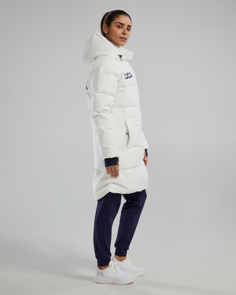 Conquer the cold in style with the TYR Women Quilted Dawn Parka - USA. Designed for athletes and outdoor enthusiasts alike, this premium parka delivers superior warmth, weather protection, and comfort when you need it most.