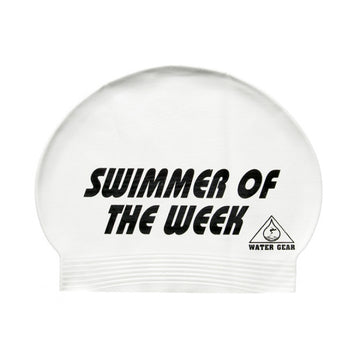 Show your competition who is the best with the Water Gear Swimmer of the Week Latex Swim Cap!